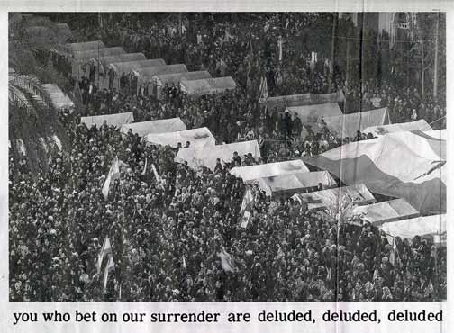 Cartoon (12/08/06 from text by Nada Bakri and Michael Slackman, photo by Petros Giannakouris)
