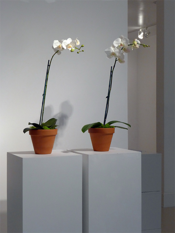 consists of two identical phalaenopsis orchids, one real and one